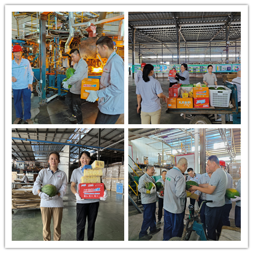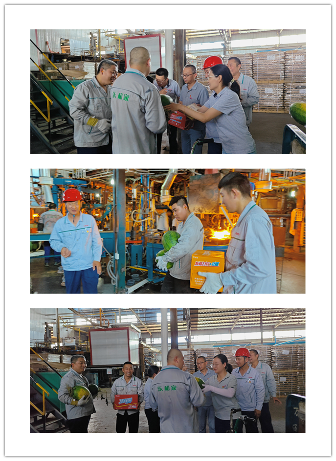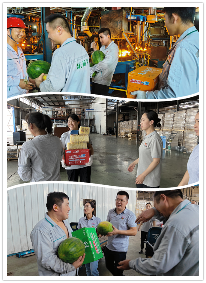 由于曜暉所處行業比較特殊,從原料粉末、熔化、玻璃液到成品,整個生產流程都需在高溫環境下實現。合影結束后,黨員代表深入車間現場開展迎“七一”送清涼活動,將濃濃關懷送到職工心坎上,代表們來到車間,把清涼的大西瓜、飲料、菊花茶等防暑降溫物品送到員工手中,為他們帶去絲絲涼意。雖然工作環境高溫悶熱,但工人們認真積極工作的態度始終如一,令人敬佩。
