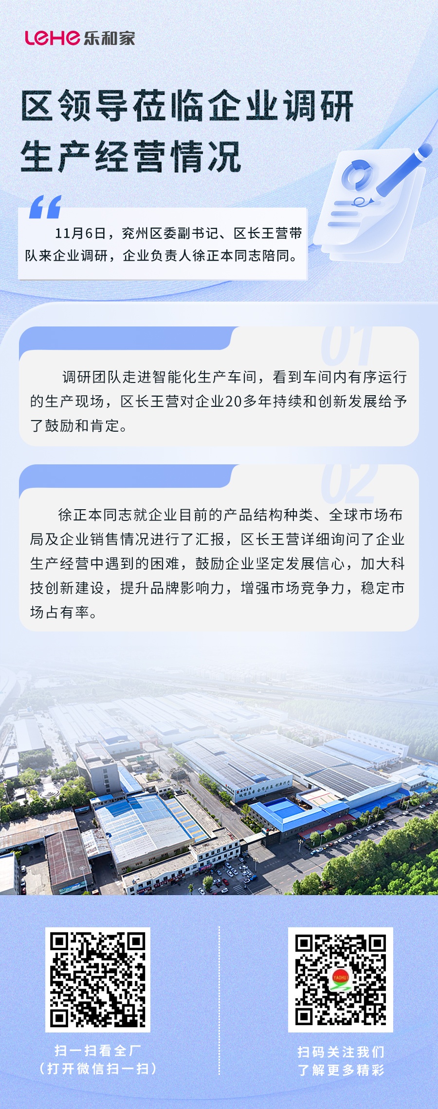 區(qū)領導蒞臨樂和家調(diào)研生產(chǎn)經(jīng)營情況